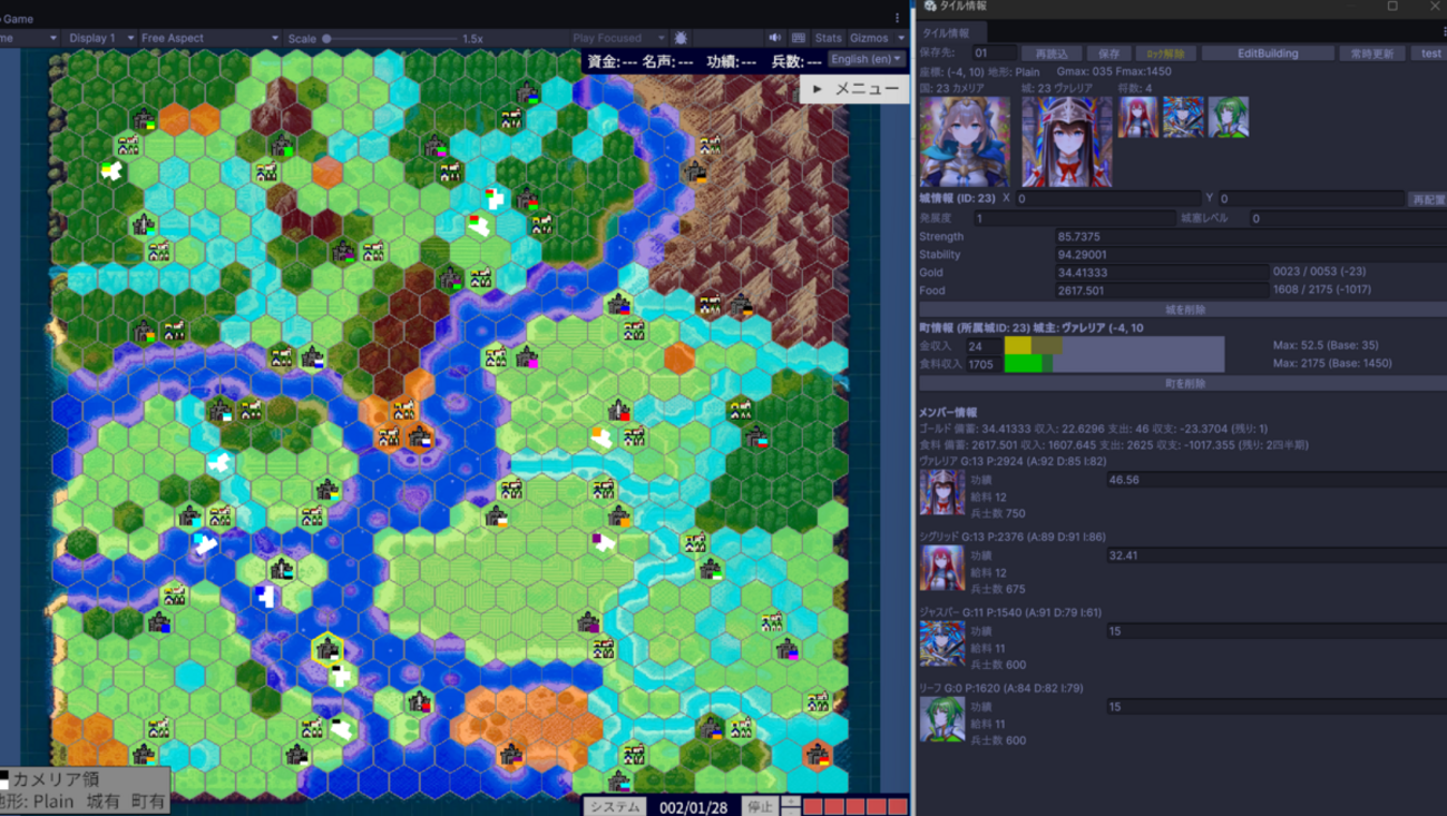 あとは輸送と反乱周りと同盟期限周りを作れば、システム部分はある程度できたと言っても良さそう。